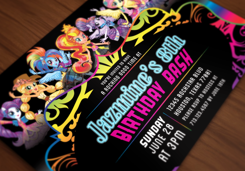I just love color. And sometimes I go a little crazy with it. So you know I just loved creating this funky bright My Little Pony Equestria Girls Rainbow Rocks -themed invitation! A mouth-full right?